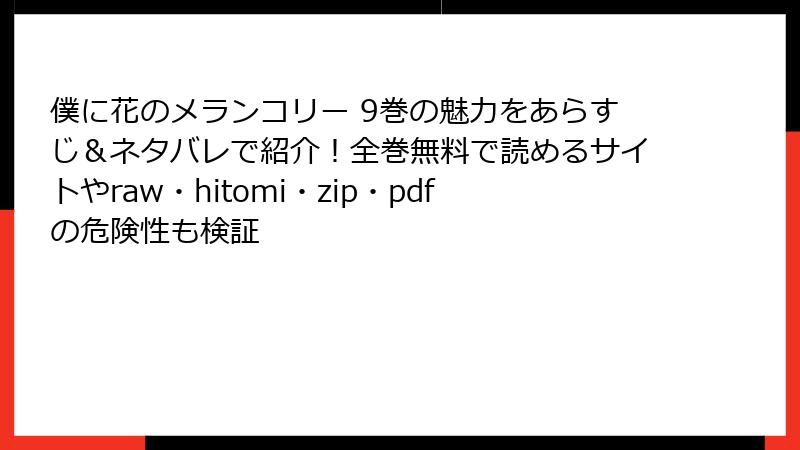 - 僕に花のメランコリー 9巻 電子書籍配信情報