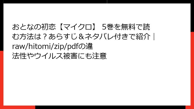 おとなの初恋【マイクロ】 5巻を無料で読む方法は?あらすじ&ネタバレ付きで紹介|raw/hitomi/zip/pdfの違法性やウイルス被害にも注意
