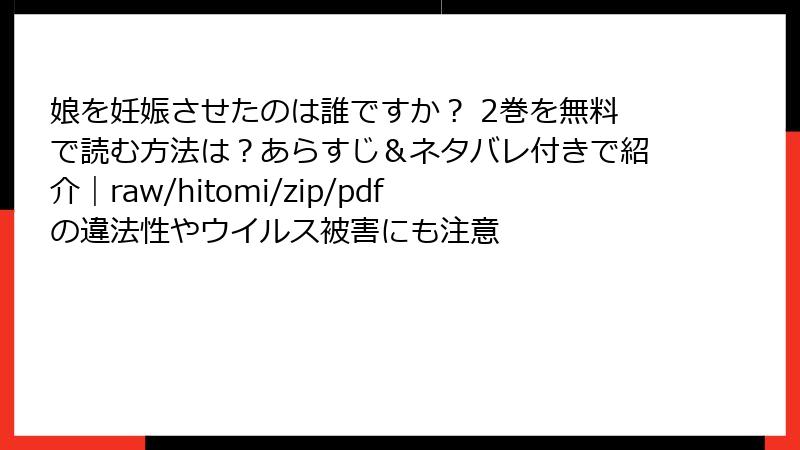 - 海賊版サイト(raw・hitomi・zip・pdf・漫画バンクなど)でこの漫画・コミックを読むリスクを徹底解説