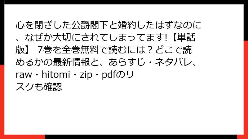 心を閉ざした公爵閣下と婚約したはずなのに、なぜか大切にされてしまってます!【単話版】 7巻を全巻無料で読むには?どこで読めるかの最新情報と、あらすじ・ネタバレ、raw・hitomi・zip・pdfのリスクも確認