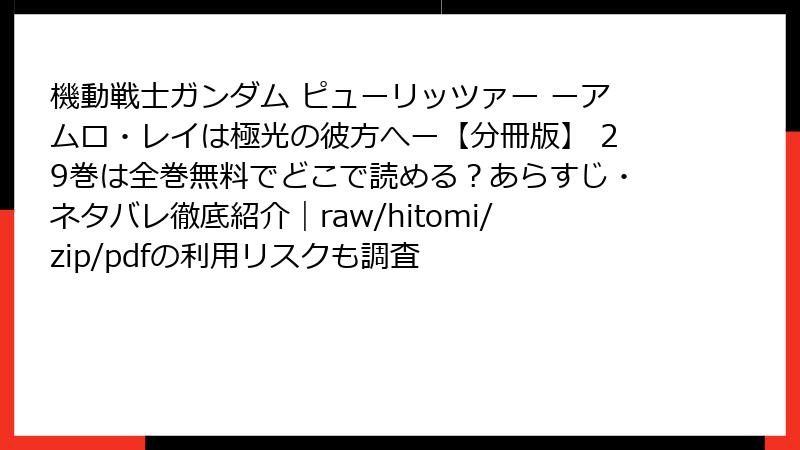 機動戦士ガンダム ピューリッツァー ーアムロ・レイは極光の彼方へー【分冊版】の29巻は、シリーズの核心に迫る展開が満載です。この巻では、キッカ・コバヤシの取材がさらに深まり、アムロ・レイの人間像がより鮮明に描かれます。以下に詳細なネタバレをまとめますが、未読の方は注意してください。物語は宇宙世紀0095年頃を舞台に、アムロの失踪後の謎を追う形で進みます。
