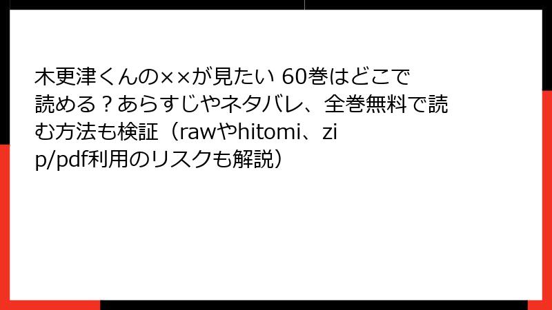 - 見出しで分け、 で読みやすく整理し、 も適宜使用したブログ形式の完全版です。リンク・URLは一切挿入していません。) この漫画・コミックをraw/hitomi/zip/pdf/漫画バンクなどの海賊版サイトで読むリスクを徹底解説