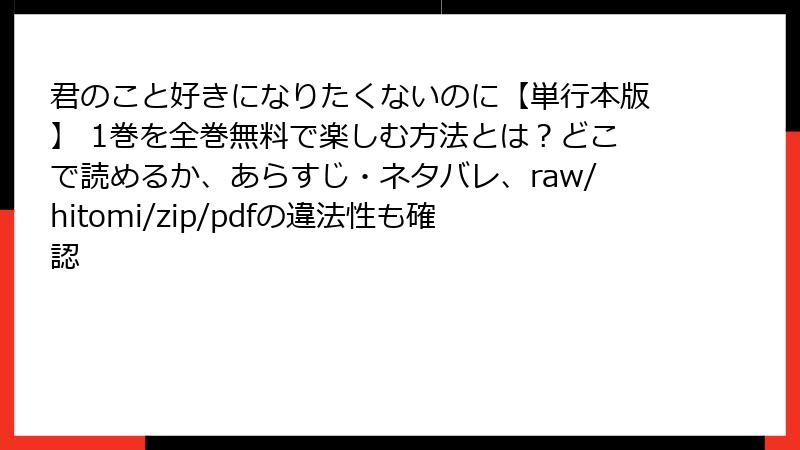 raw/hitomi/zip/pdf/漫画バンクなどの海賊版サイトは、法的・セキュリティ・倫理的なリスクが満載です。一瞬の無料に釣られて、後悔しないよう注意してください。最終的に損をするのは利用者自身です。正規ルートで「君のこと好きになりたくないのに」を楽しむのがベストです。