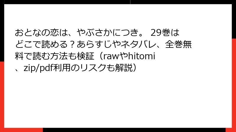- おとなの恋は、やぶさかにつき。 29巻の詳しいあらすじ