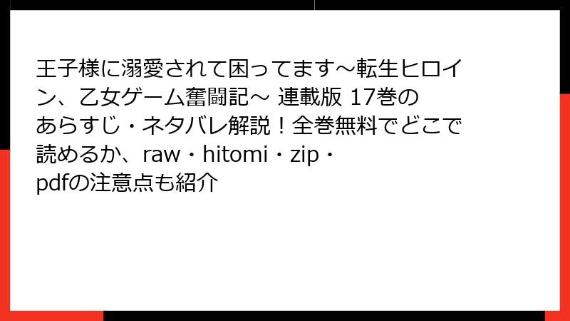 - 王子様に溺愛されて困ってます~転生ヒロイン、乙女ゲーム奮闘記~ 連載版 17巻のあらすじ