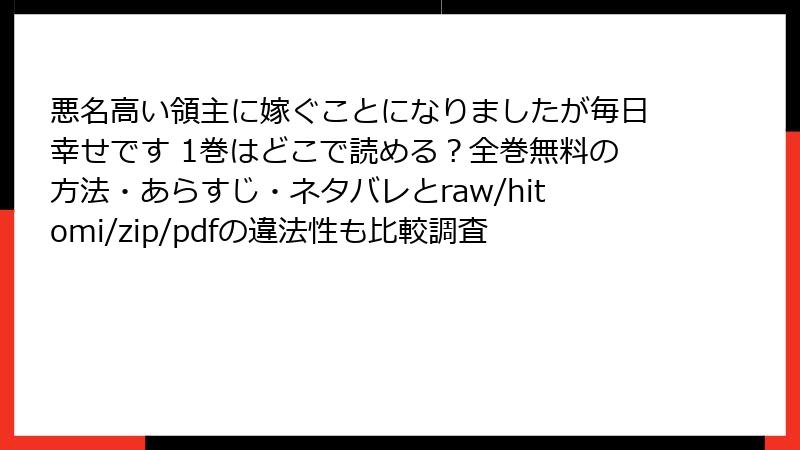 - 悪名高い領主に嫁ぐことになりましたが毎日幸せです 1巻の電子書籍配信ガイド