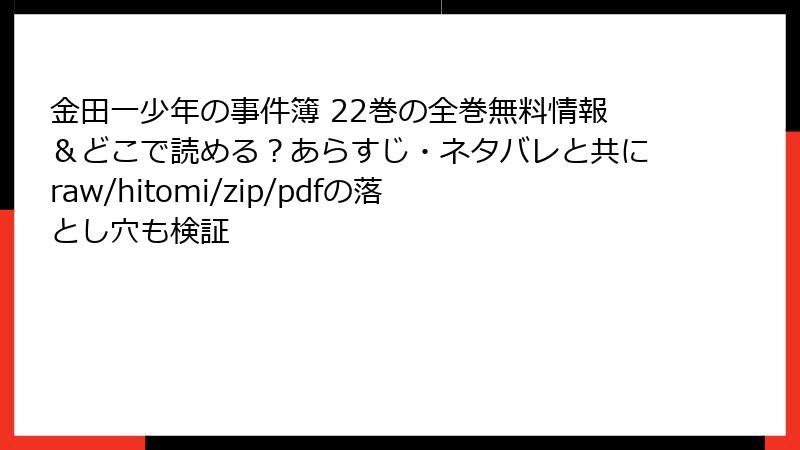 まとめると、海賊版サイトは一時的な無料の裏に大きなリスクが潜んでいます。法的・セキュリティ・倫理的な観点から、絶対に避けるべきです。「金田一少年の事件簿 22巻」を楽しむなら、正規版でミステリーの醍醐味を味わいましょう。