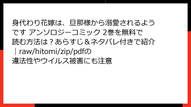 - 身代わり花嫁は、旦那様から溺愛されるようです アンソロジーコミック 2巻 あらすじ