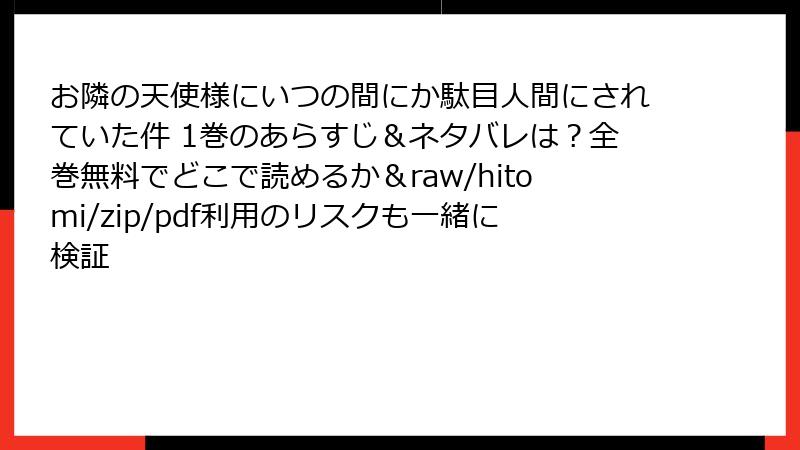 お隣の天使様にいつの間にか駄目人間にされていた件 1巻のあらすじ&ネタバレは?全巻無料でどこで読めるか&raw/hitomi/zip/pdf利用のリスクも一緒に検証