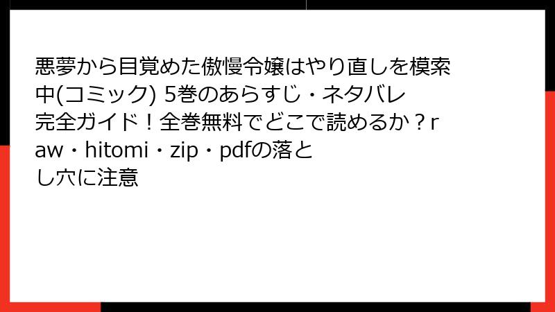 - 悪夢から目覚めた傲慢令嬢はやり直しを模索中(コミック) 5巻 の詳しいあらすじ