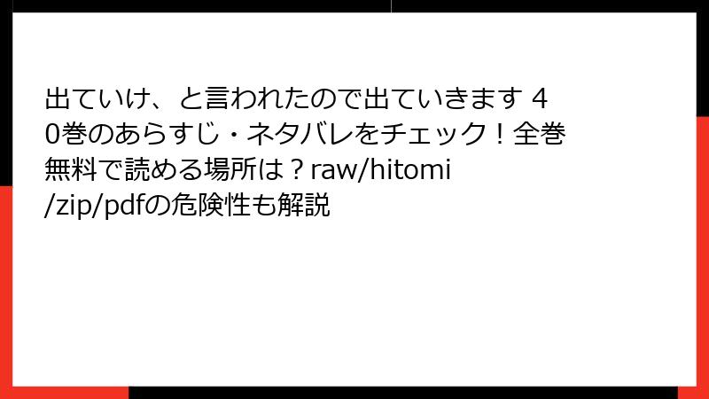 出ていけ、と言われたので出ていきます 40巻のあらすじ・ネタバレをチェック!全巻無料で読める場所は?raw/hitomi/zip/pdfの危険性も解説