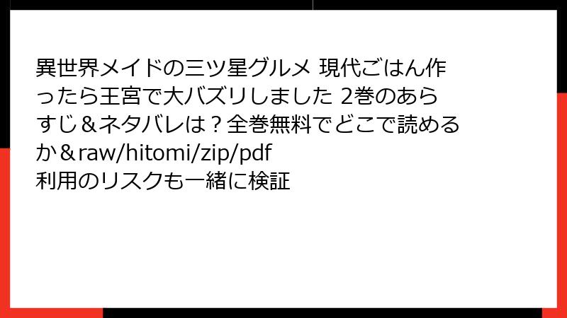 raw/hitomi/zip/pdf/漫画バンクのリスクは、法的・セキュリティ・倫理の三重苦。2025年現在、被害報告が急増する中、一時的な無料の誘惑に負けず、正規ルートを選ぶのが賢い選択です。『異世界メイドの三ツ星グルメ』のように、心温まる作品を安全に味わい、作者に感謝のエールを送りましょう。あなたのデバイスと心を守るために、今日から変わろう! コメントで「正規サービスのおすすめ」をシェアしてくださいね。次回は安全読書ガイドの続編をお届けします。お楽しみに♪