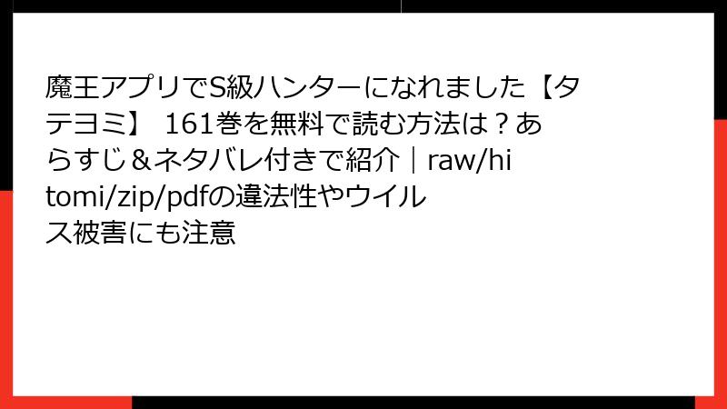 魔王アプリでS級ハンターになれました【タテヨミ】 161巻を無料で読む方法は?あらすじ&ネタバレ付きで紹介|raw/hitomi/zip/pdfの違法性やウイルス被害にも注意