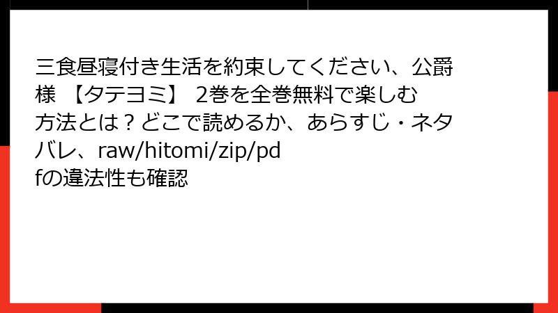 | 三食昼寝付き生活を約束してください、公爵様 | ○ | ○(シリーズ) | ○ | ○(最新刊) | ○ | ○(8話無料・50話毎日無料) | ○ | ○(単行) |