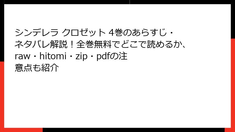 シンデレラ クロゼット 4巻のあらすじ・ネタバレ解説!全巻無料でどこで読めるか、raw・hitomi・zip・pdfの注意点も紹介