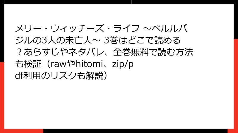 メリー・ウィッチーズ・ライフ ~ベルルバジルの3人の未亡人~ 3巻はどこで読める?あらすじやネタバレ、全巻無料で読む方法も検証(rawやhitomi、zip/pdf利用のリスクも解説)