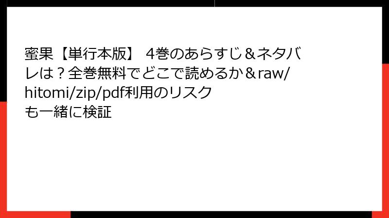 蜜果【単行本版】 4巻のあらすじ&ネタバレは?全巻無料でどこで読めるか&raw/hitomi/zip/pdf利用のリスクも一緒に検証