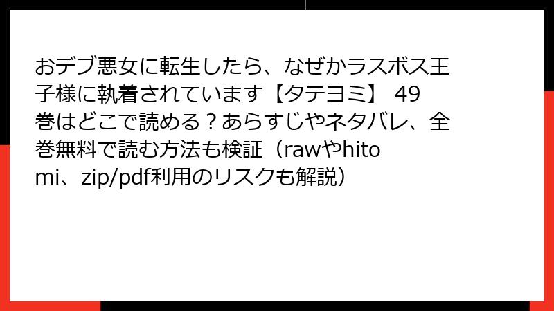 - おデブ悪女に転生したら、なぜかラスボス王子様に執着されています【タテヨミ】49巻 詳細あらすじ