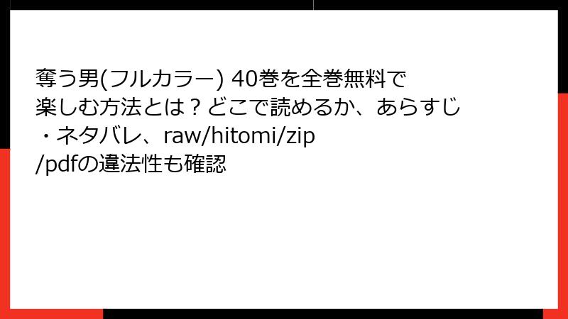 奪う男(フルカラー) 40巻をraw/hitomi/zip/pdf/漫画バンクなどの海賊版サイトで読むリスク