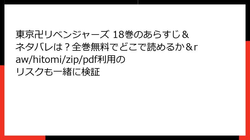 東京卍リベンジャーズ 18巻のあらすじ&ネタバレは?全巻無料でどこで読めるか&raw/hitomi/zip/pdf利用のリスクも一緒に検証