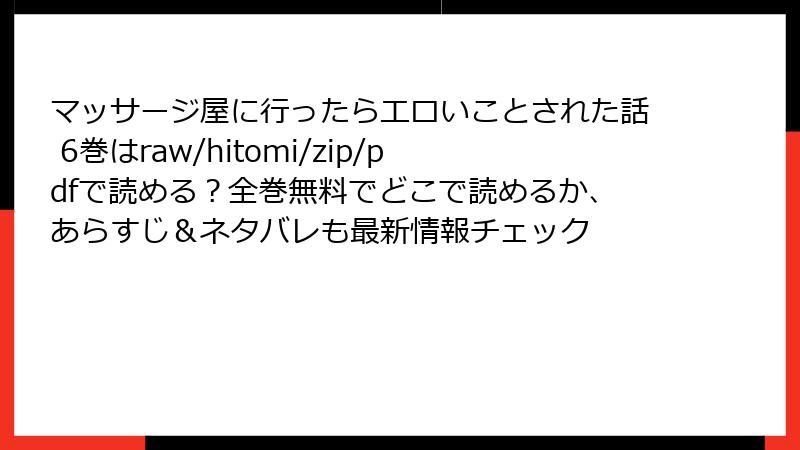 - マッサージ屋に行ったらエロいことされた話 6巻 の電子書籍版が読めるサービス