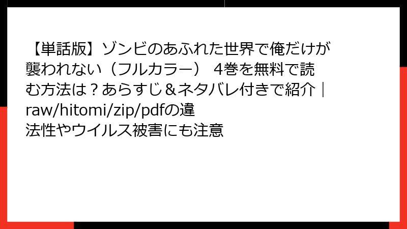 【単話版】ゾンビのあふれた世界で俺だけが襲われない(フルカラー) 4巻 を海賊版サイトで読むリスク詳解