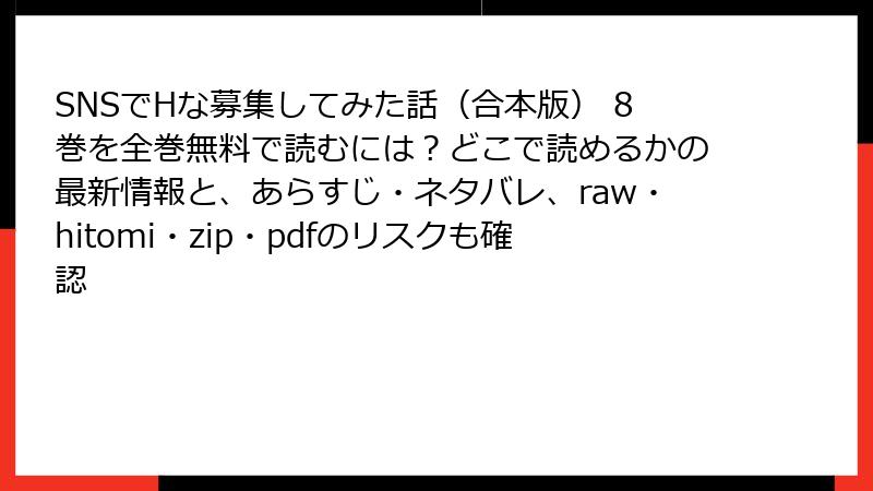 - SNSでHな募集してみた話(合本版) 8巻 ネタバレ