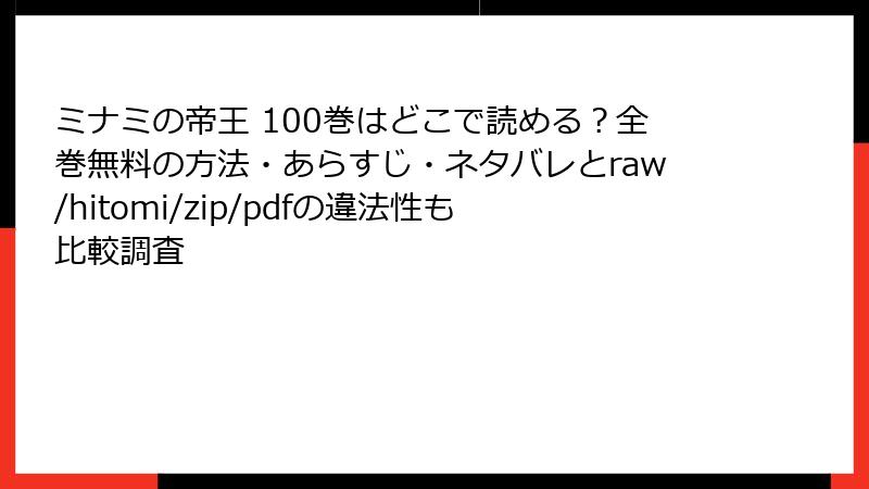 人気漫画『ミナミの帝王』100巻を、raw、hitomi、zip、pdf、漫画バンクなどの海賊版サイトで読むことは、一見手軽に思えますが、深刻なリスクを伴います。この記事では、そうしたサイトを利用する際の法的、セキュリティ、プライバシー、経済的・倫理的な問題を詳しく解説します。無料で楽しむ代償として、どのような危険が潜んでいるのかを理解し、賢明な選択を検討しましょう。