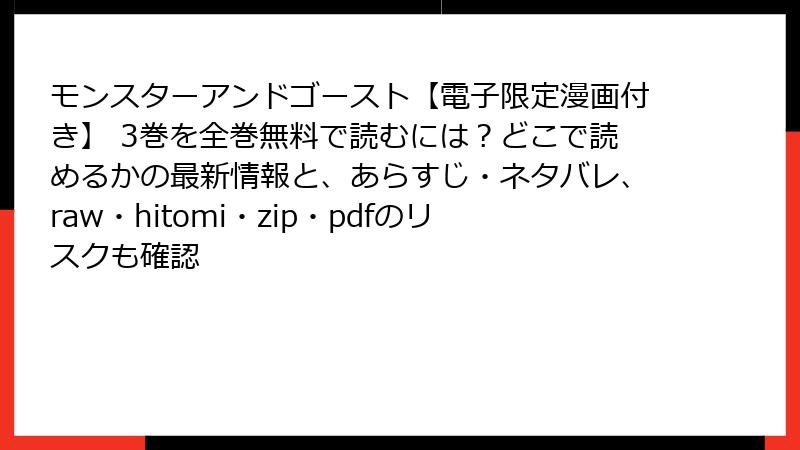 モンスターアンドゴースト【電子限定漫画付き】 3巻を全巻無料で読むには?どこで読めるかの最新情報と、あらすじ・ネタバレ、raw・hitomi・zip・pdfのリスクも確認