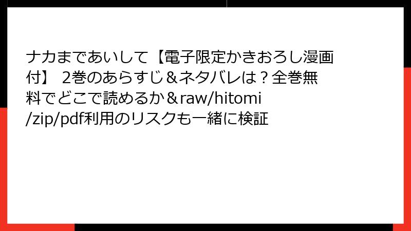 - +複数 で読み応え十分にまとめています。) ※全作品共通で「未読の方は絶対に読まないでください」と警告を入れ、 を活用して視覚的に整理。リンクは一切なし。 海賊版サイト(raw/hitomi/zip/pdf/漫画バンクなど)で漫画を読むリスクを徹底解説