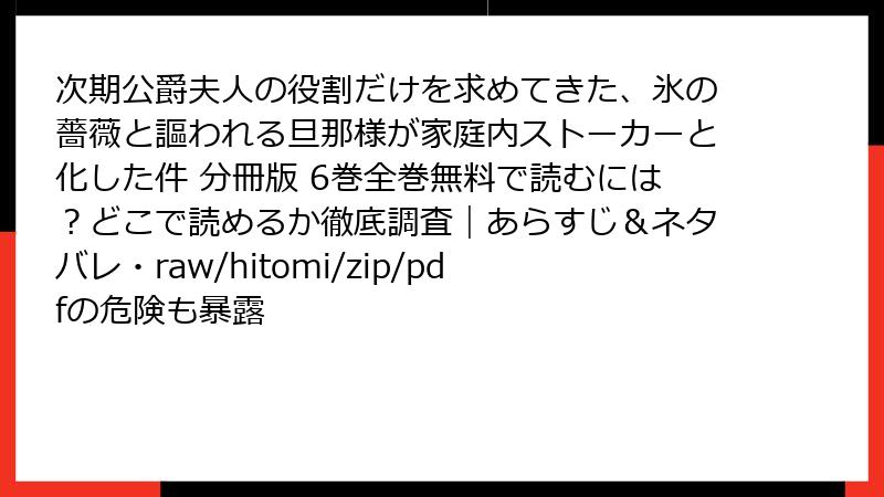 次期公爵夫人の役割だけを求めてきた、氷の薔薇と謳われる旦那様が家庭内ストーカーと化した件 分冊版 6巻全巻無料で読むには?どこで読めるか徹底調査|あらすじ&ネタバレ・raw/hitomi/zip/pdfの危険も暴露
