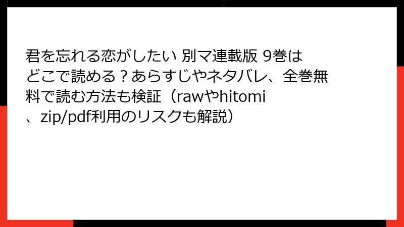 君を忘れる恋がしたい 別マ連載版 9巻はどこで読める?あらすじやネタバレ、全巻無料で読む方法も検証(rawやhitomi、zip/pdf利用のリスクも解説)