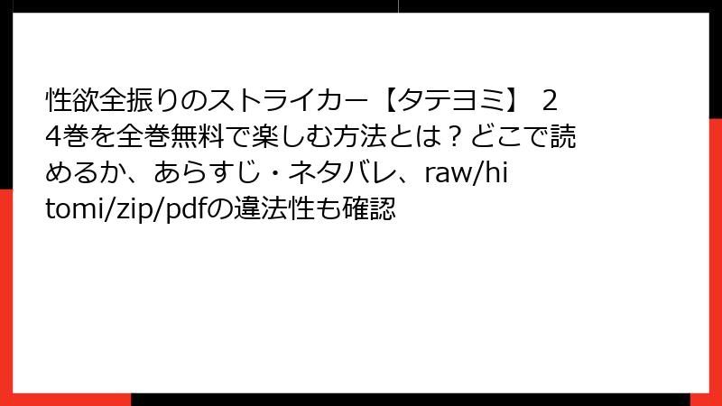 『性欲全振りのストライカー【タテヨミ】』のような人気漫画を、raw、hitomi、zip、pdf、漫画バンクなどの海賊版サイトで読むのは一見便利ですが、深刻なリスクを伴います。この記事では、これらのサイトを利用する際のさまざまな危険性を詳しく解説します。法的問題からセキュリティの脅威、倫理的な側面までを掘り下げ、なぜ正規ルートをおすすめするのかを明らかにします。海賊版の利用は短期的な節約以上の損失を生む可能性が高いのです。