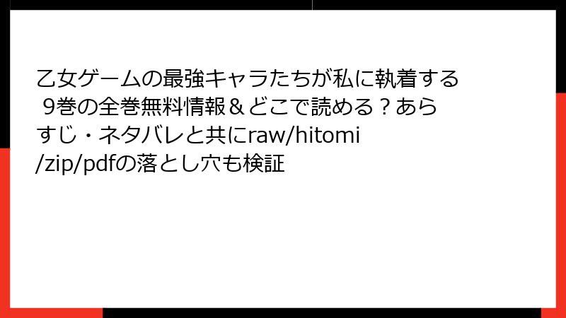 皆さん、こんにちは! 乙女ゲーム転生コミックを合法的に応援し続けるブロガーです。今回は、『乙女ゲームの最強キャラたちが私に執着する』9巻を「raw」「hitomi」「zip」「pdf」「漫画バンク」などの海賊版サイトで読もうとしている方へ、ガチの警告記事をお届けします。「無料で読めるならいいじゃん」と思うかもしれませんが、その代償は想像以上に重い。法的・倫理的・技術的・健康的なリスクを、具体例とデータで徹底解説。読み応え重視で、複数の角度から深掘りします。未読のまま海賊版に手を出す前に、必ず最後まで読んでください!