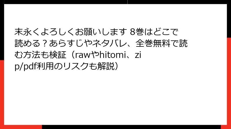 末永くよろしくお願いします 8巻はどこで読める?あらすじやネタバレ、全巻無料で読む方法も検証(rawやhitomi、zip/pdf利用のリスクも解説)