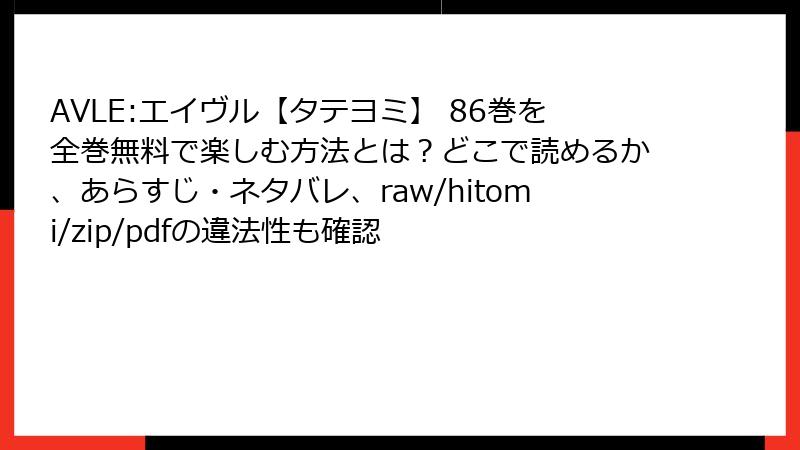 - AVLE:エイヴル【タテヨミ】 86巻を海賊版サイトで読むリスクを深掘り