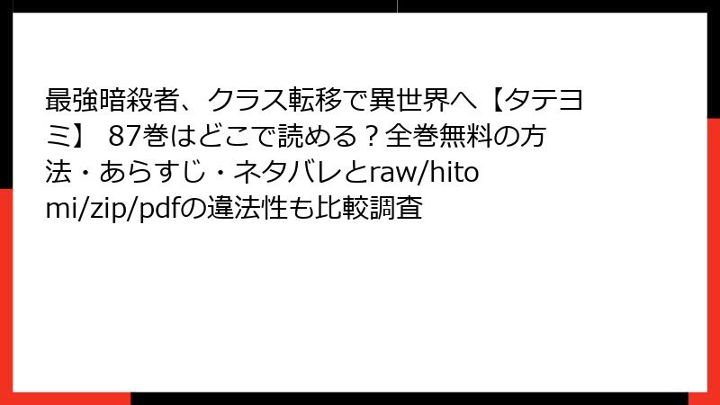 最強暗殺者、クラス転移で異世界へ【タテヨミ】 87巻 電子書籍版が読めるサービス