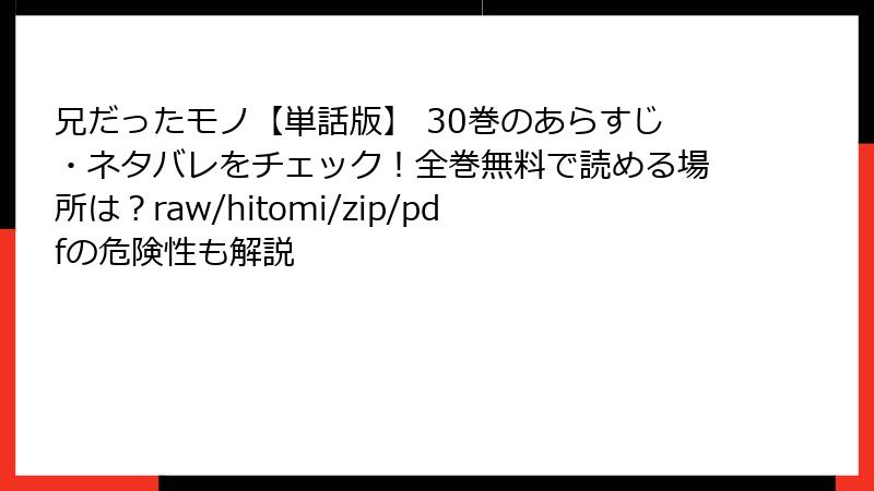 兄だったモノ【単話版】 30巻のあらすじ・ネタバレをチェック!全巻無料で読める場所は?raw/hitomi/zip/pdfの危険性も解説