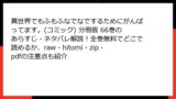 この漫画をrawで読む場合も、ダウンロード形式が多いため、法的リスクが特に高まります。
