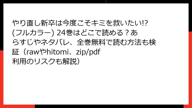 やり直し新卒は今度こそキミを救いたい!?(フルカラー) 24巻をraw/hitomi/zip/pdf/漫画バンクなどの海賊版サイトで読むリスク