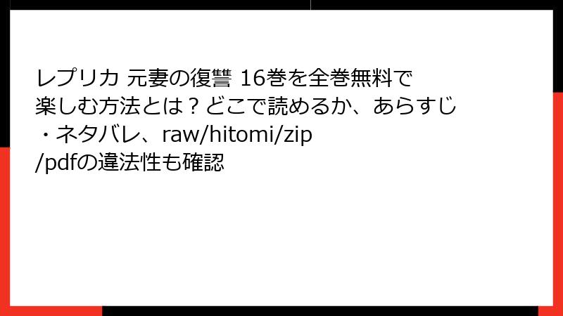 - レプリカ 元妻の復讐 16巻を海賊版サイトで読むリスク