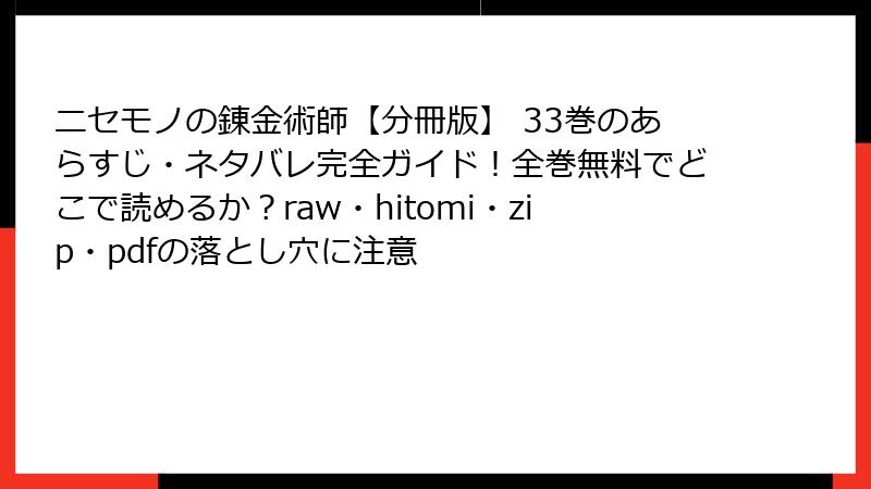 ニセモノの錬金術師【分冊版】 33巻を海賊版サイトで読むリスク