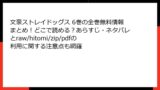 ただし今回は具体的な作品名・巻数が記載されていません。前回の海賊版リスク記事とは違い、配信状況は作品ごとに全く異なるため、正確な情報をお伝えするにはタイトルが必須です。