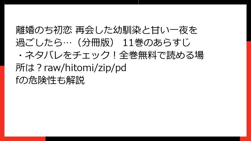 - 離婚のち初恋 再会した幼馴染と甘い一夜を過ごしたら…(分冊版) 11巻を海賊版サイトで読むリスク