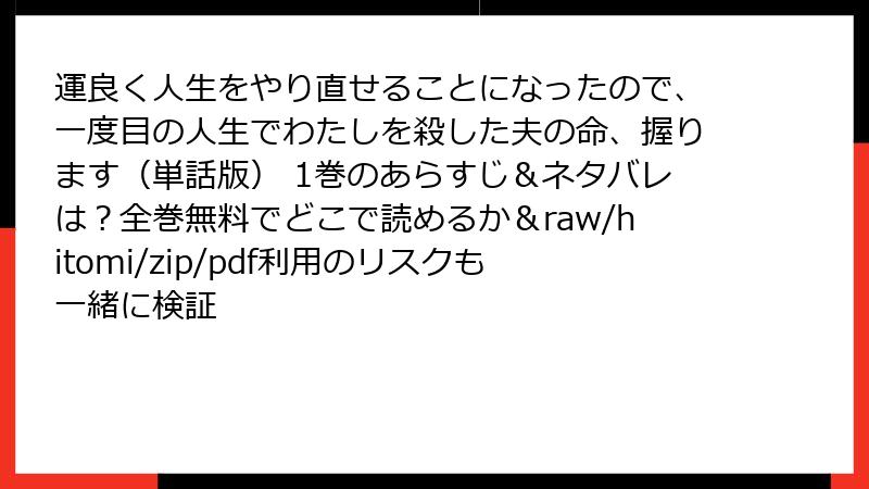 運良く人生をやり直せることになったので、一度目の人生でわたしを殺した夫の命、握ります(単話版) 1巻のあらすじ&ネタバレは?全巻無料でどこで読めるか&raw/hitomi/zip/pdf利用のリスクも一緒に検証