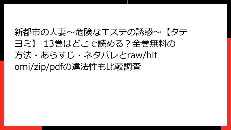 - 【警告】「新都市の人妻~危険なエステの誘惑~」をraw/hitomi/zip/pdf/漫画バンクで読むとヤバい! 海賊版の全リスクを徹底解説