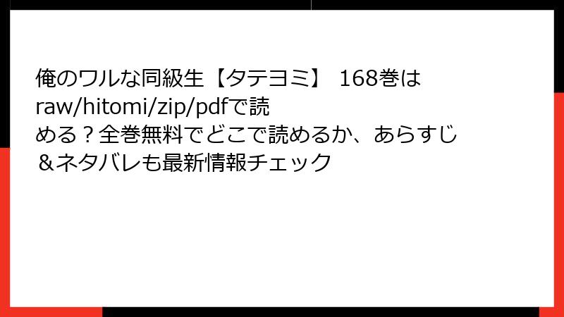 俺のワルな同級生【タテヨミ】 168巻はraw/hitomi/zip/pdfで読める?全巻無料でどこで読めるか、あらすじ&ネタバレも最新情報チェック