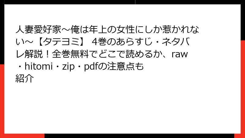 ※この記事は『人妻愛好家』4巻の完全ネタバレです。まだ読んでいない方は絶対に読み進めないでください! ここでは、1ページごとの展開、セリフ、心理描写、Hシーンまで徹底的に暴露。読みたいけど読めない人、復習したい人、衝撃の結末を知りたい人のための、究極のネタバレブログです。覚悟はいいですか? それでは、深淵へ飛び込みましょう。