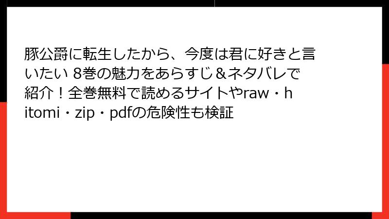 豚公爵に転生したから、今度は君に好きと言いたい:海賊版サイトで読む致命的なリスク全解説
