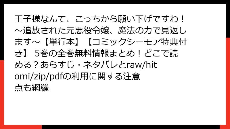- 王子様なんて、こっちから願い下げですわ!~追放された元悪役令嬢、魔法の力で見返します~【単行本】【コミックシーモア特典付き】 5巻 ネタバレ